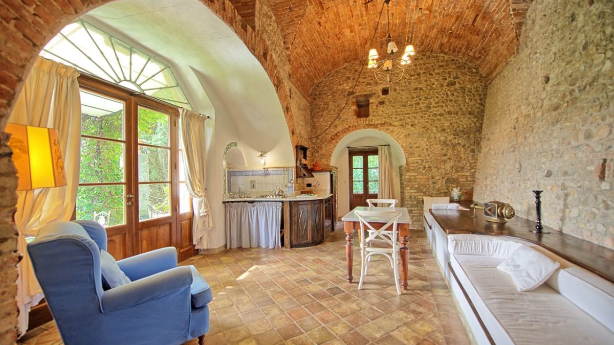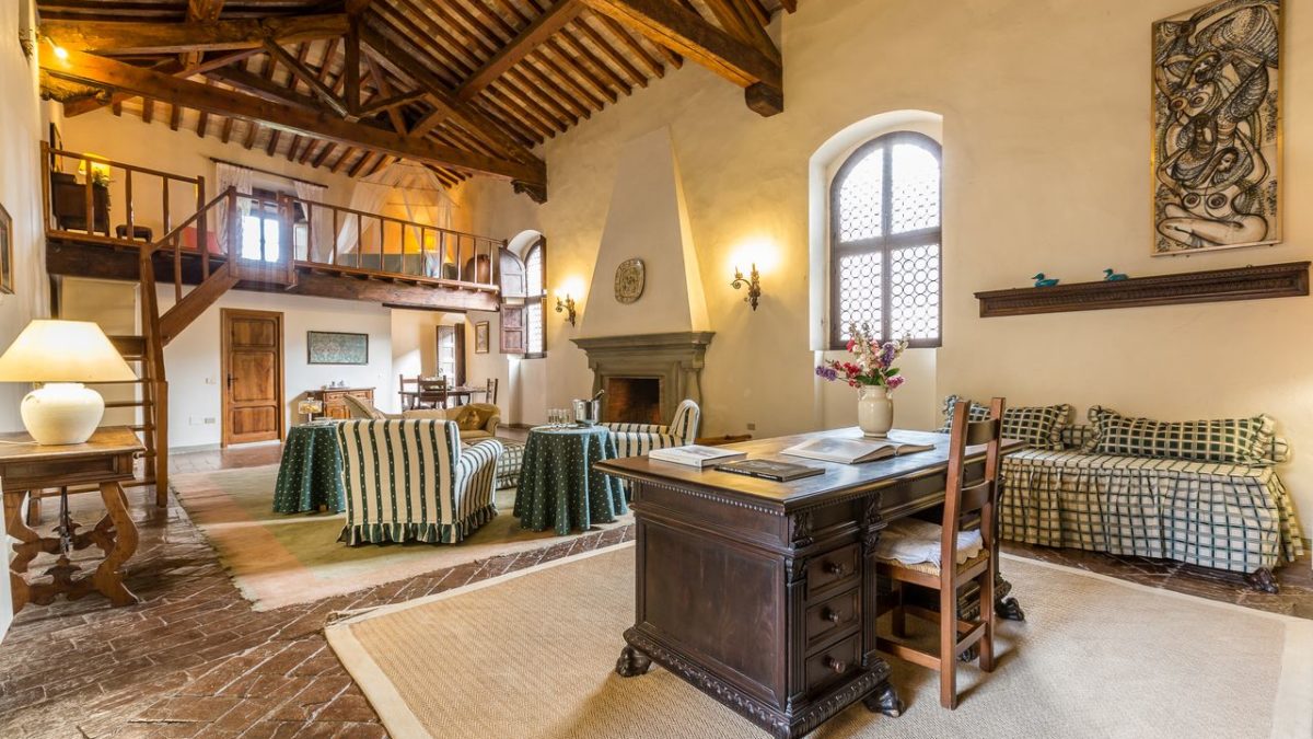 Dating back to the 12th century, restored in the 17th century, the castle is part of a large estate comprising vineyards and olive trees in the heart of Chianti region: it is distant 20 km from Florence and approximatly 70 km from Pisa. The castle has a magnificent tower built on the model of the one of Palazzo Vecchio and the outbuildings of the castle as well were restored and turned into charming apartments. The castle offers large and very charming terraced park, Italian gardens dating back to the 18th century and a swimming-pool.
