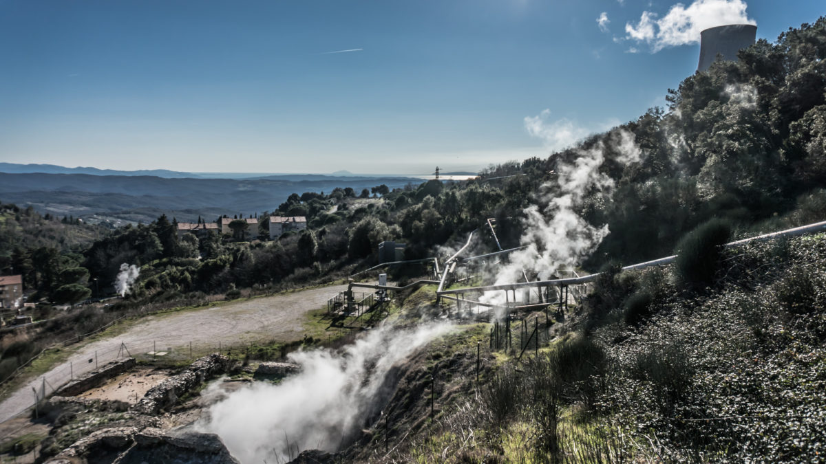 The Lardarello Geothermal Power Station is located on the metalliferous hills of Pisa, in the middle of the Valle del diavolo (Devil’s Valley). Borax fumaroles, with their typical columns of white vapour, are present here. It is the world’s first experience of exploitation of geothermal energy for the production of electricity.