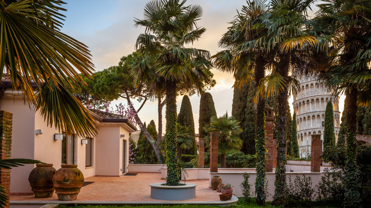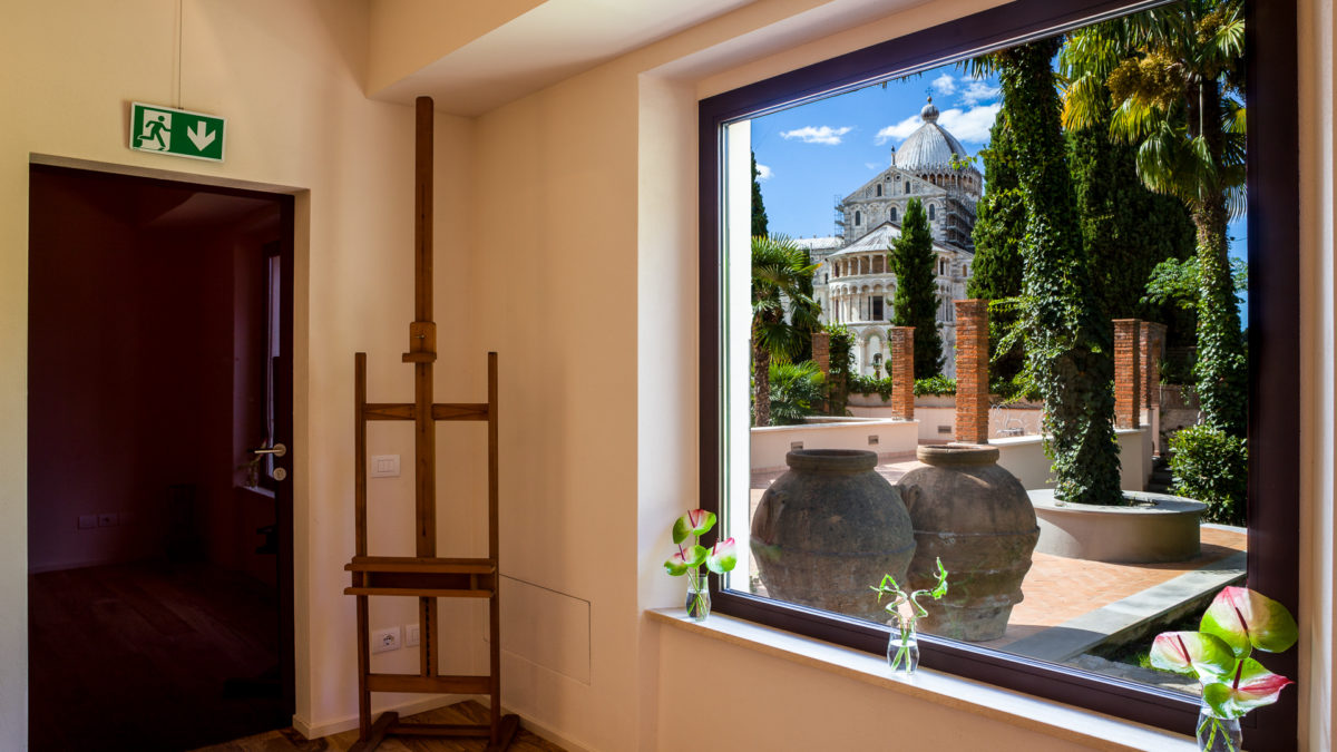 The Domus Comeliana is a historic residence located in the centre of Pisa, dating back to the 15th century. It has a garden on two levels that looks out onto Piazza dei Miracoli. Inside the garden there is an irregular pentagon-shaped pool with a marble statue of Venus.
