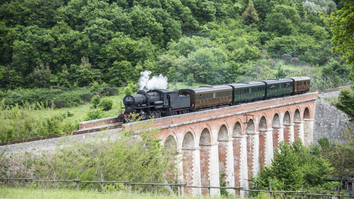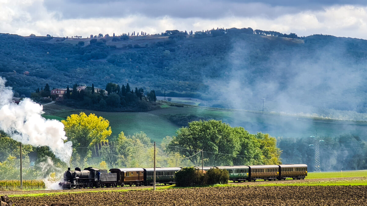 The Asciano – Monte Antico Railway is a railway line, designed in 1859, which connects the towns of Siena and Grosseto. Known as the Val d’Orcia Railway, it connects the municipality of Asciano (Siena) to the hamlet of Monte Antico (Grosseto) crossing through the Val d’Orcia Park, the areas of Brunello di Montalcino and the Crete Senesi. The line, closed to normal passenger traffic in 1994, is now used as a tourist railway with the help of historic steam locomotives.