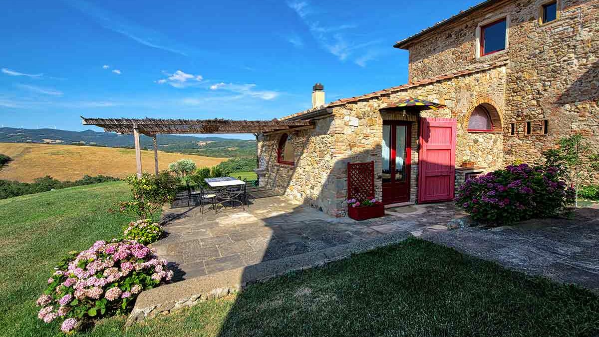 The farmhouse was built in 1750 for 3 families who had the task of managing the crops of the surrounding land. The farm offers a variety of 6 apartments combined with a relaxing swimming pool and pleasant views over the Tuscan hills.