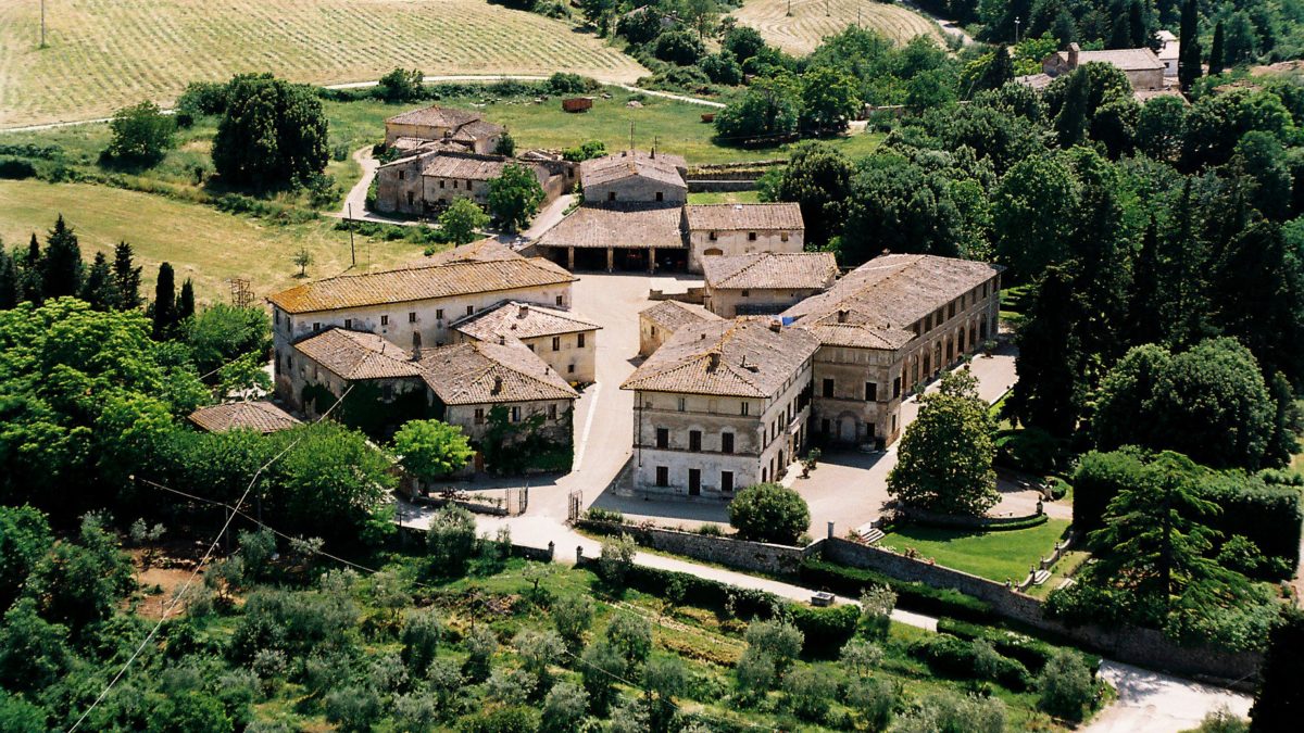 The Tenuta Bichi Borghesi is a historic agricultural holding of over 400 hectares located about 25 km from Siena. The centre of the holding consists of the village surrounded by a large park of 4 hectares with a seventeenth-century villa and monumental stables.