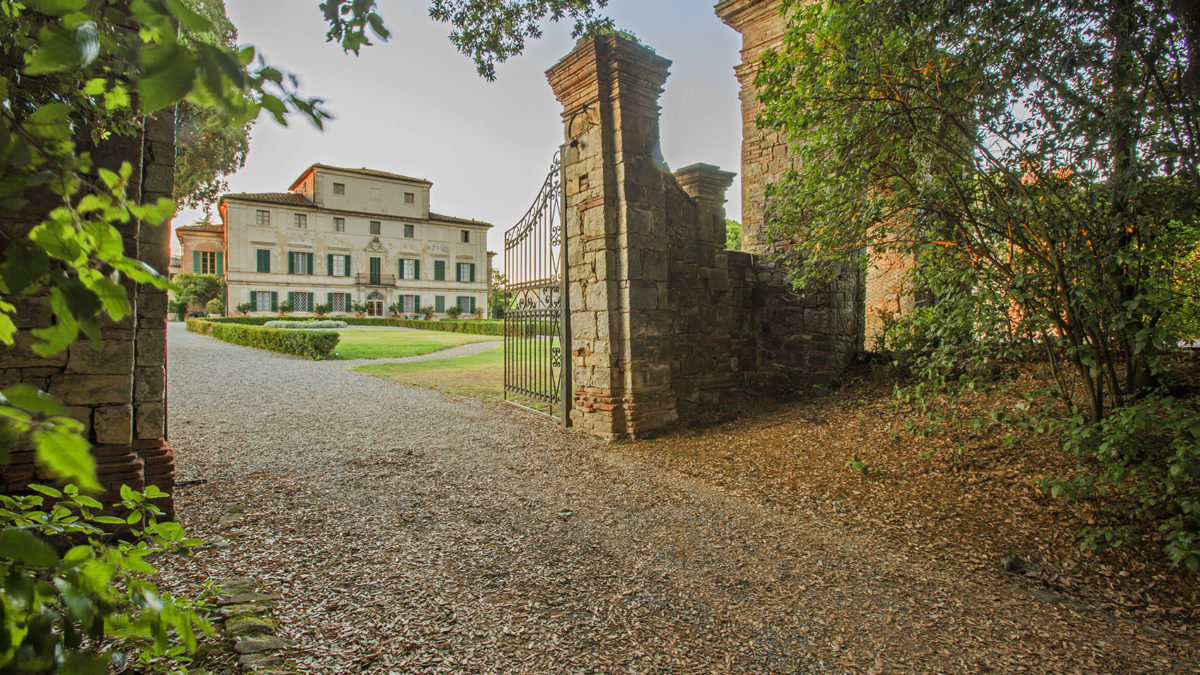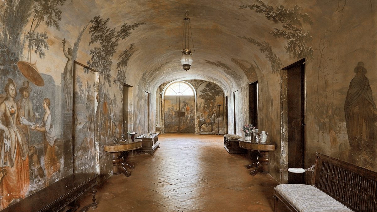 Gli interni, in stile ’700, sono ancora integralmente conservati, come la galleria di ingresso dipinta dal pittore tirolese Ignazio Moder. Nel grande giardino all’italiana si trovano cipressi centenari, siepi di bosso, piante di limone in vaso e il Pomario, un misto di aiuole e ortaggi. Di grande pregio il Teatro di Verzura.