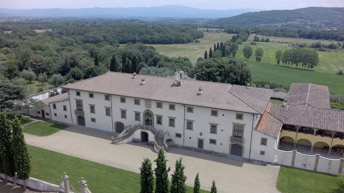 Villa Monsoglio, a circa 25 km da Arezzo risale al tardo cinquecentesco e presenta uno scalone monumentale di ingresso. Di particolare interesse la cappella, i saloni affrescati e un grande giardino all’italiana.